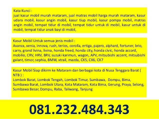 Kami jamin barang kami termurah. 498 likes · 4 talking about this. Fitur matras kasur di dalam mobil: Toyota, isuzu, mitsubishi, nissan, daihatsu, ford, suzuki. Paling relevan harga termurah harga termahal produk terbaru diskon tertinggi diskon terendah.